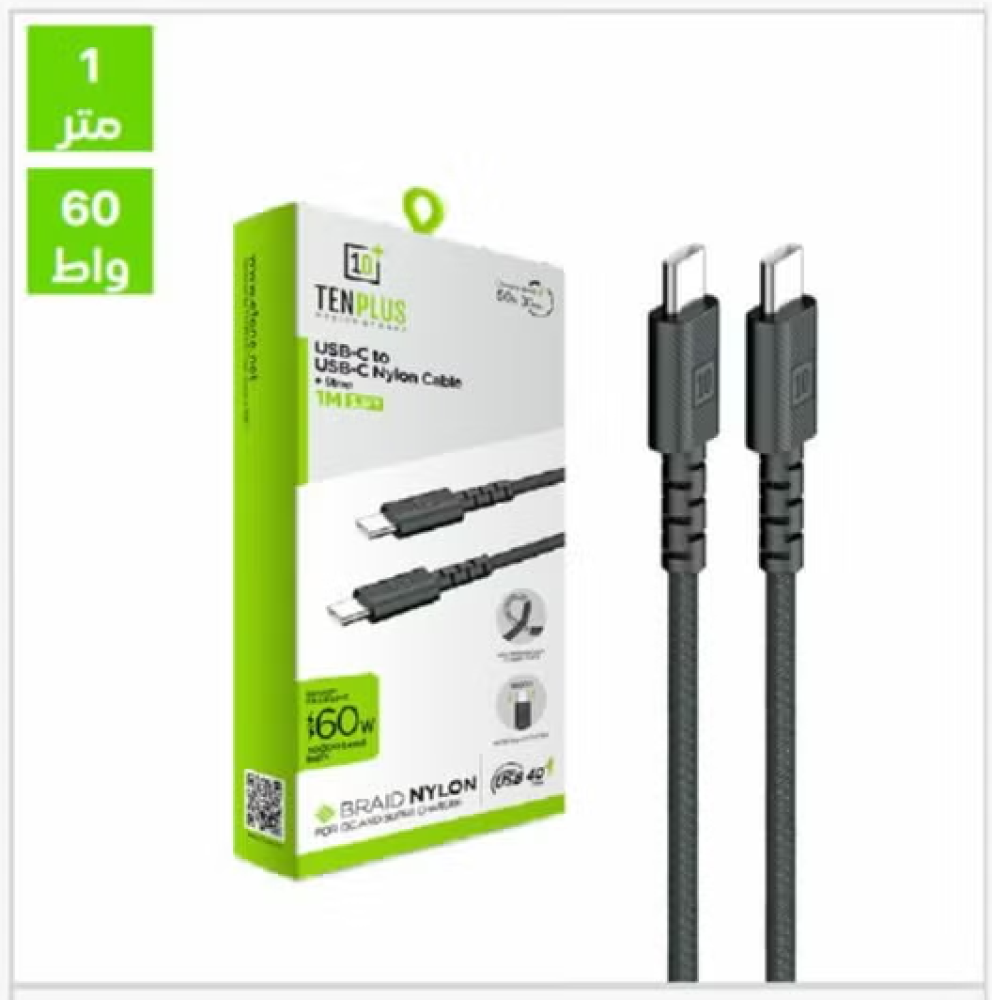كابل شحن سريع من النوع C إلى النوع C، يدعم الشحن ونقل البيانات. أقصى قدرة شحن 9 فولت/6.66 أمبير. سرعة نقل بيانات 480 ميجابايت/ثانية. - TENPLUS